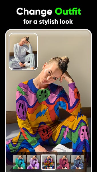 ميزة أخرى للتطبيق هي ممحاة ومغير الخلفية. يوفر ميزة تغيير الخلفية التلقائي ويمكنه تطبيق خلفيات صور غير محدودة. أداة تغيير الملابس متاحة أيضًا لتبديل الملابس في الصور. يوفر التطبيق أيضًا تراكبات وملصقات للصور وتغيير حجم الصور.